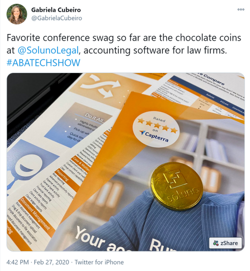 Soluno is a legal accounting product that deals with money, chocolate is a crowd favourite, and having the coins embossed is a fun way for people to remember our product.